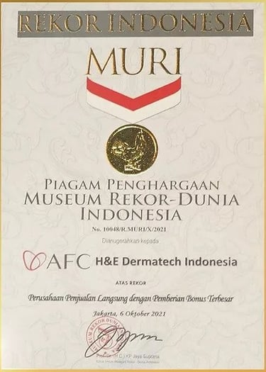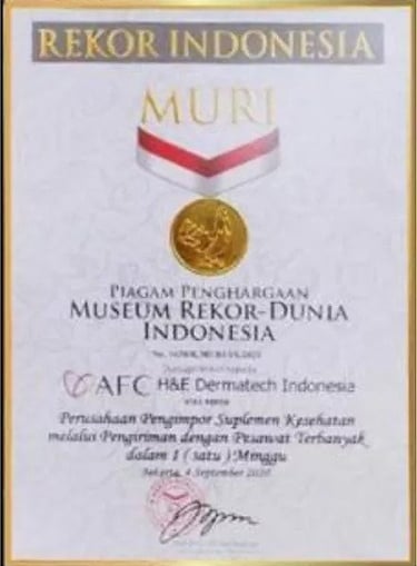AFC Life Science merupakan distributor resmi dari AFC Jepang hadir di Indonesia sebagai perusahaan Direct Selling terbesar dan terpercaya di Indonesia. Komitmen kami bagi Indonesia menyediakan All Natural Supplement dengan kualitas terbaik dengan bahan bahan anti aging super premium yang sudah mendapatkan patent, teruji secara klinis dan penghargaan Internasional dengan Marketing Plan terbaik di Indonesia saat ini. Berikut ini alasan mengapa AFC Life Science menjadi pilihan yang tepat untuk membantu kesehatan dan kesejahteraan kita semua.